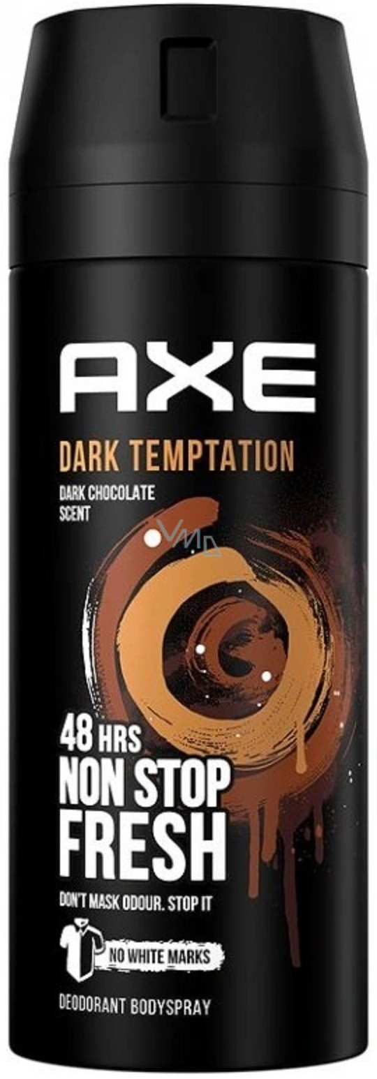 Podobnie jak czekolady, kobiety nie będą mogły oprzeć się nowej wersji od Axe Dark Temptation. Oprócz mężczyzn, kobiety uwodzi głównie czekolada, ale od czasów nowego Axe Dark Temptation nie ma wątpliwości, czemu zawsze dadzą pierwszeństwo! Wiele badań dowiodło, że dla kobiet jednym z największych pokus na świecie jest właśnie czekolada. Powodem jest jej kremowa konsystencja i doskonały słodki smak. Jej zapach dodatkowo w naszym mózgu uruchamia proces fizyczny, który sprawia, że nagle czujemy się doskonale. I właśnie z tych powodów marka Axe opracowała specjalny ekscytujący orientalny zapach, który jest prawdziwą innowacją i nowością w ramach oryginalnej serii dezodorantów Axe. Nowa wersja Axe Dark Temptation sprawi, że kobiety będą pragnęły nieustannie „skubnąć” mężczyzn – właściwie nie będą pragnęły niczego innego.