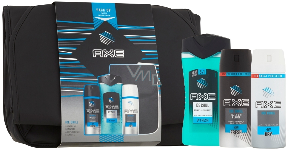 Axe Ice Chill sprchový gel pro muže 250 ml + deodorant sprej pro muže 150 ml + antiperspirant deodorant sprej pro muže 150 ml + batoh, kosmetická sada