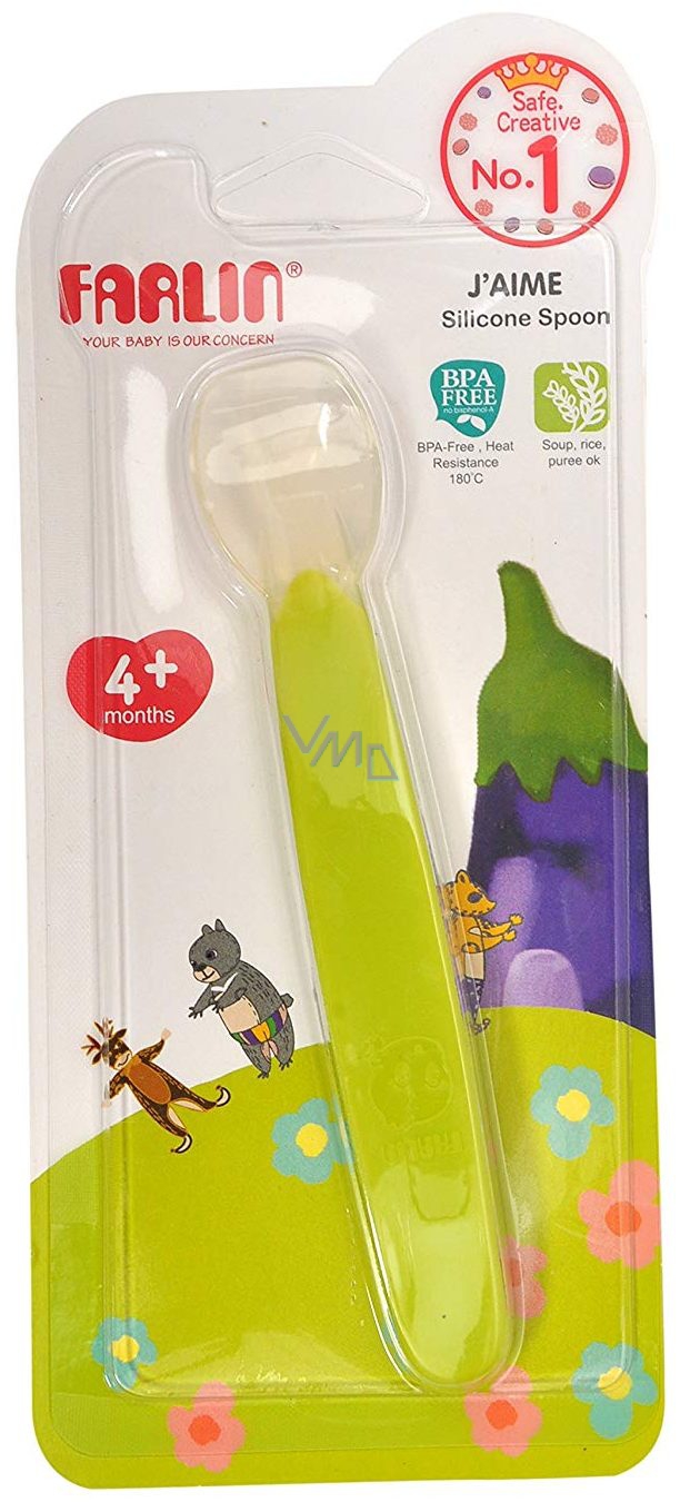 Farlin Łyżeczka silikonowa odpowiednia dla dzieci od 4 miesięcy, idealna do podawania pierwszych pokarmów, wykonana z wysokiej jakości miękkiego i elastycznego silikonu, który jest delikatny dla dziąseł i pierwszych ząbków.