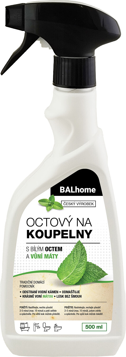 Balhome ocetowy środek czyszczący do łazienek to skuteczny pomocnik w codziennym sprzątaniu. Dzięki naturalnej sile octu łatwo usuwa osady kamienia wodnego, mydła oraz brud z powierzchni w łazience. Zostawia powierzchnie lśniąco czyste i świeże. Dodatkowy zapach mięty neutralizuje charakterystyczny ocetowy zapach i pozostawia przyjemną świeżość. Praktyczny rozpylacz umożliwia łatwe i równomierne nakładanie środka nawet w trudno dostępnych miejscach.