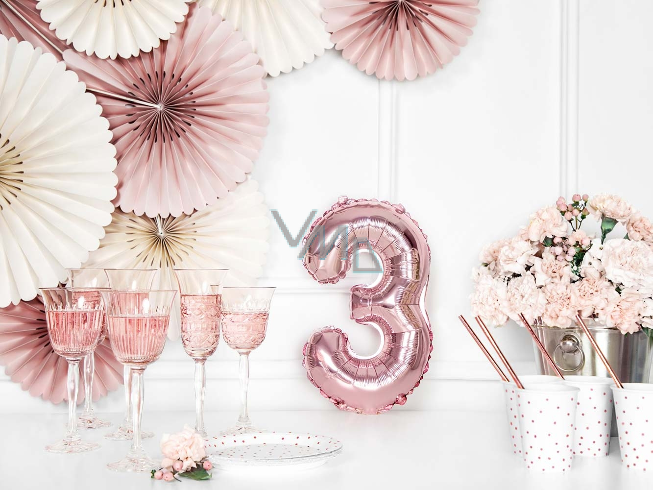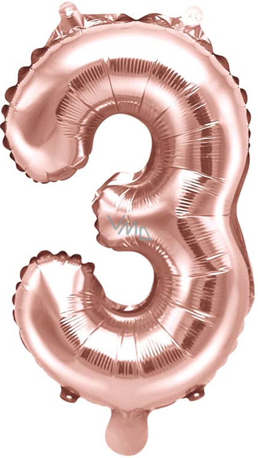 Ditipo Balon foliowy napełniany numer 3 różowe złoto 35 cm 1 sztuka