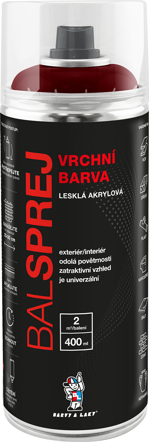 BALSPREJ to uniwersalna błyszcząca farba w sprayu nadająca się do malowania drewna, metalu, nadwozi, niektórych plastików. Wyróżnia się wydajnością, jest szybko schnąca, po naniesieniu nie spływa. Jest odporna na warunki atmosferyczne i korozję. Można ją pokryć bezbarwnym lakierem akrylowym w sprayu.