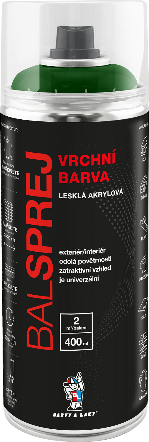 BALSPREJ to uniwersalny błyszczący kolor w sprayu nadający się do malowania drewna, metalu, nadwozi samochodowych, niektórych tworzyw sztucznych. Wyróżnia się wydajnością, jest szybkoschnący, po nałożeniu nie spływa. Jest odporny na warunki atmosferyczne i korozję. Można go pokryć bezbarwnym akrylowym lakierem w sprayu.