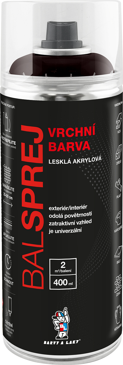 BALSPREJ to uniwersalna błyszcząca farba na wierzch w sprayu nadająca się do malowania drewna, metalu, nadwozi, niektórych tworzyw sztucznych. Wyróżnia się dużą wydajnością, jest szybkoschnąca, po nałożeniu nie spływa. Jest odporna na warunki atmosferyczne i korozję. Można ją ponownie malować bezbarwnym lakierem akrylowym w sprayu.