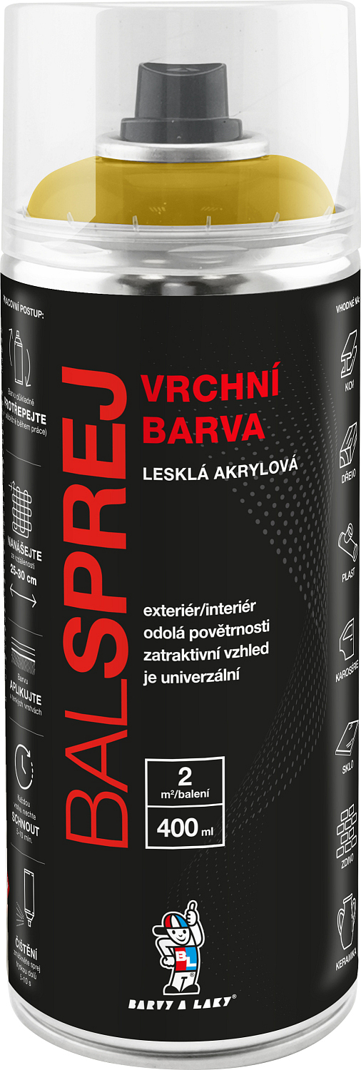 BALSPREJ vrchní uniwersalna farba akrylowa w sprayu, RAL 1021 żółta musztardowa, 400 ml