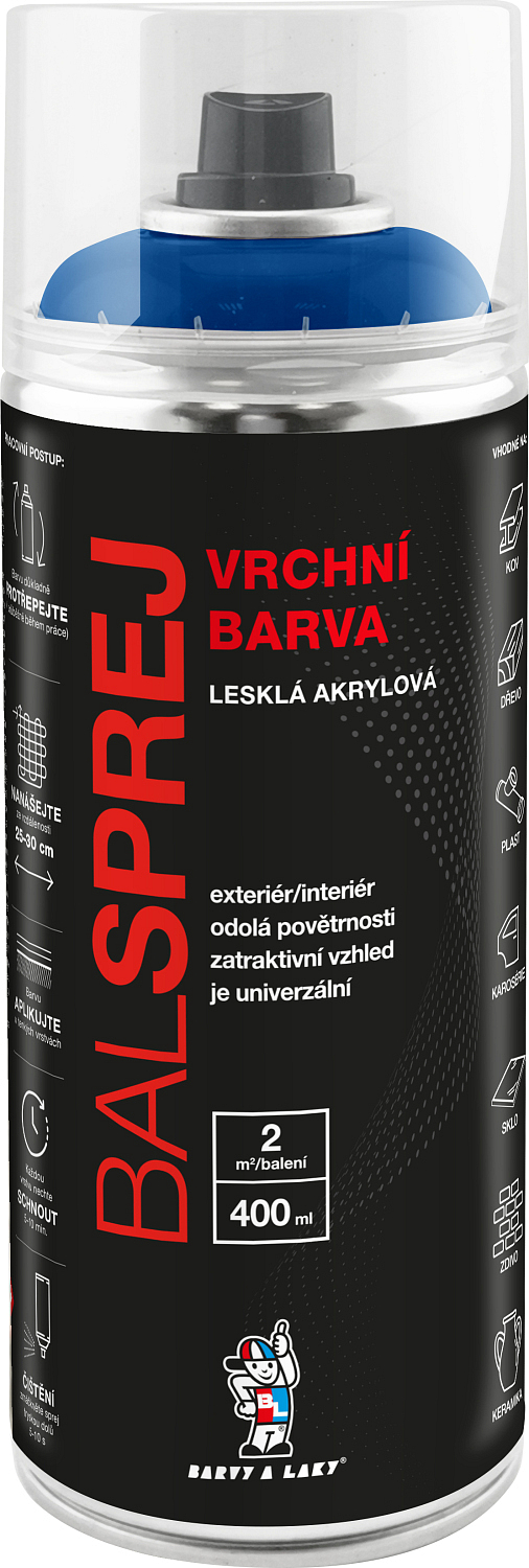 BALSPREJ to uniwersalna błyszcząca farba w sprayu przeznaczona do malowania drewna, metalu, nadwozi i niektórych tworzyw sztucznych. Wyróżnia się wydajnością, jest szybkoschnąca, po naniesieniu nie spływa. Jest odporna na warunki atmosferyczne i korozję. Może być malowana bezbarwnym akrylowym lakierem w sprayu.