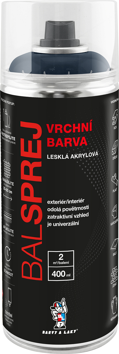 BALSPREJ to uniwersalna błyszcząca farba w sprayu nadająca się do malowania drewna, metalu, karoserii, niektórych tworzyw sztucznych. Wyróżnia się wydajnością, szybko schnie, po nałożeniu nie spływa. Jest odporna na czynniki atmosferyczne i korozję. Można ją pokryć bezbarwnym lakierem akrylowym w sprayu.
