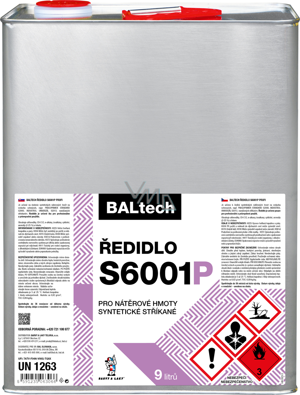 BALTECH S6001 P Rozcieńczalnik jest przeznaczony do rozcieńczania syntetycznych farb schnących na powietrzu, np. PRAGOPRIMER STANDARD S2000, INDUSTROL UNIWERSAL S2013, nakładanych natryskowo. Rozcieńczalnik przeznaczony jest wyłącznie do użytku profesjonalnego i przemysłowego.