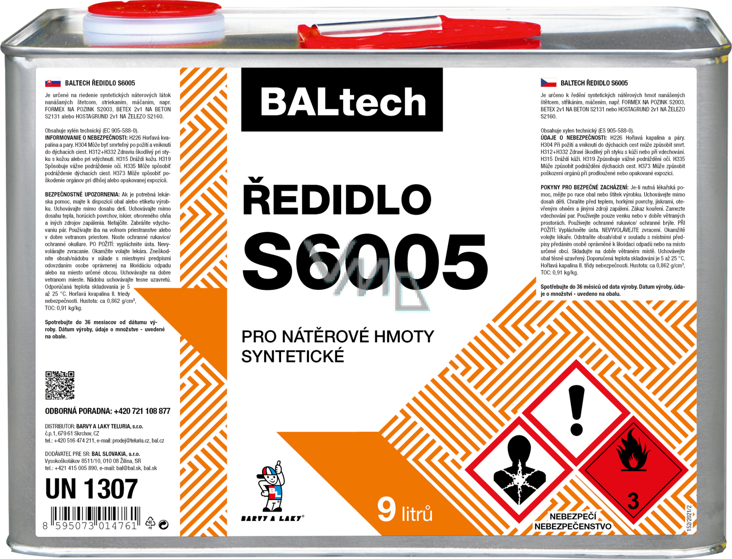 BALTECH S6005 Rozcieńczalnik jest przeznaczony do rozcieńczania syntetycznych powłok malarskich nakładanych pędzlem, natryskiem, zanurzaniem, np. FORMEX NA POZINK S2003, BETEX 2w1 NA BETON S2131 lub HOSTAGRUND 2w1 NA ŻELAZO S2160.