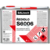 BALTECH S6006 Rozpusťovadlo jest przeznaczone do rozcieńczania olejowych i syntetycznych powłok malarskich schnących na powietrzu, do nakładania pędzlem, wałkiem i rozpylaczem, o ile na etykiecie rozcieńczanego produktu nie podano inaczej.