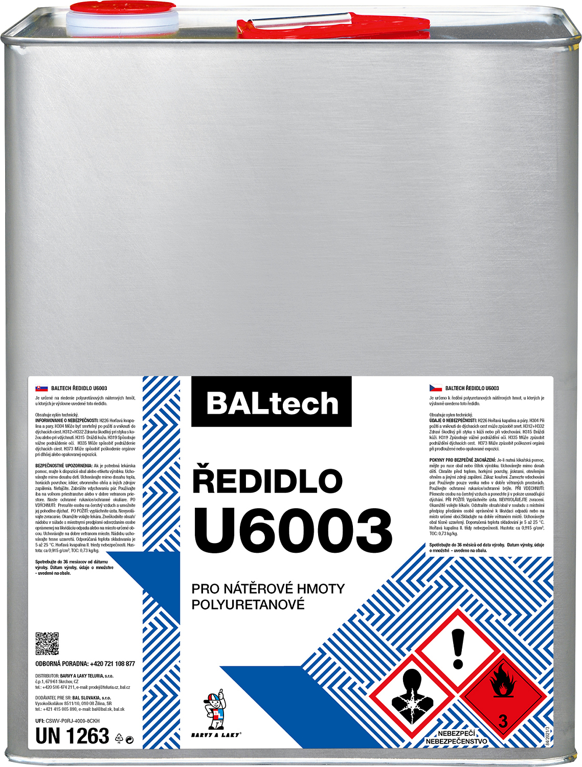 BALTECH U6003 Rozcieńczalnik jest przeznaczony do rozcieńczania poliuretanowych powłok malarskich, dla których ten rozcieńczalnik jest zalecany przez producenta. Rozcieńczalnik dodaje się dopiero po utwardzeniu powłoki malarskiej i należy go stosować tylko w niezbędnej ilości, aby nie zniszczyć powłoki malarskiej nadmiernym rozcieńczeniem.