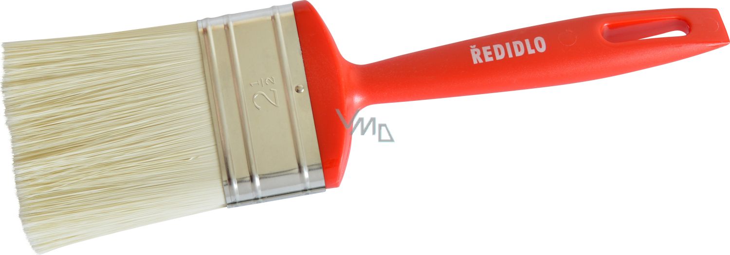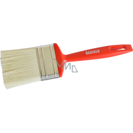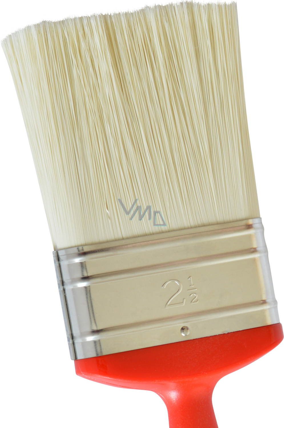 Plastikowy uchwyt obrócony w stosunku do głowy pędzla dla lepszego chwytu, zakończenie uchwytu w formie szpachelki - skrobaka, czyste włosie. Odpowiedni do wszystkich rodzajów powłok malarskich.