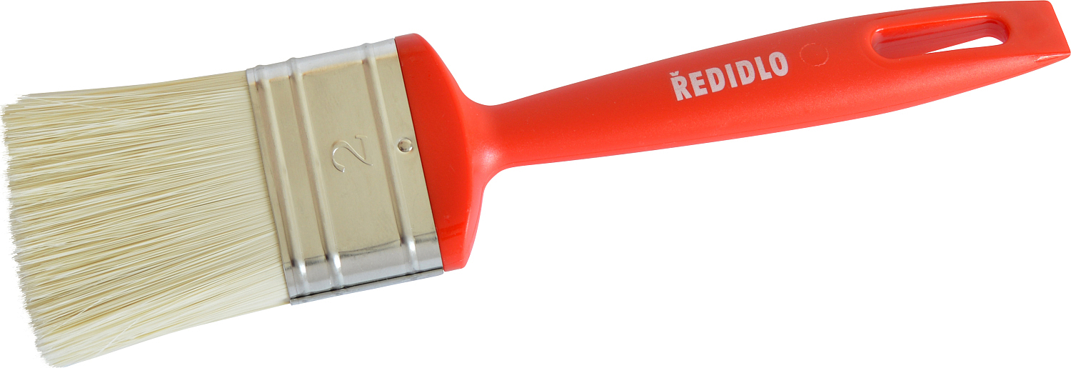 Plastikowy uchwyt obrócony w stosunku do głowy pędzla dla lepszego chwytu, zakończenie uchwytu w formie szpatułki - skrobaczki, czyste włosie. Odpowiedni do wszystkich rodzajów farb.