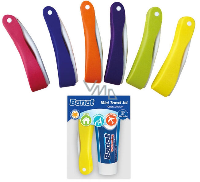 Banat Podróżny szczoteczka do zębów + wybielająca pasta do zębów 15 ml, zestaw podróżny