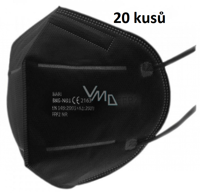 Bari Medical Respirátor ústní ochranný 5-vrstvý FFP2 obličejová maska černá 20 kusů