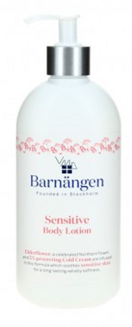 Tělové mléko BARNÄNGEN Sensitive Body Lotion s láskou pečuje o citlivou pokožku, které poskytuje intenzivní hydrataci a udržuje její přirozenou vlhkost. Chrání pokožku těla před vysoušením a zároveň zklidňuje podráždění, které může být projevem působení vnějších vlivů. Sensitive tělové mléko s obsahem 5 % Cold Cream a výtažky z černého bezu poskytuje okamžitou a dlouhotrvající jemnost s výsledkem sametově hebké pokožky. Díky podmanivé vůni se stal bezový květ hlavní květinou pro švédské oslavy letního slunovratu. Zahalte pokožku těla příjemnou vůní a doteky hebkosti s tělovým mlékem BARNÄNGEN!