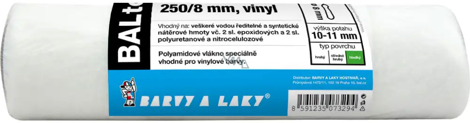 Barwy i Laki Hostivař przedstawiają wałek odpowiedni do prac malarskich z farbami winylowymi, akrylowymi i dysperyjnymi o wyższej gęstości. Wałek ma krótkie włosie.