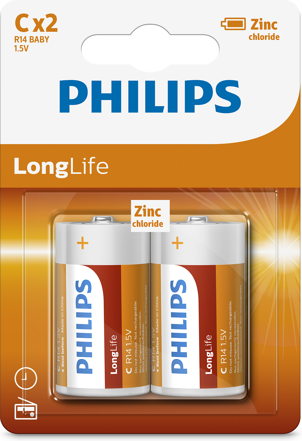 Batérie LongLife od spoločnosti Philips, typ CR14 mono, poskytuje dlhú životnosť, zinkochloridová technológia, vhodná do rádií, hodín, kalkulačiek, diaľkových ovládačov a ďalších zariadení s nízkou spotrebou energie, 2 ks v balení. Zinkouhlíkové batérie Philips obsahujú 0% škodlivých ťažkých kovov