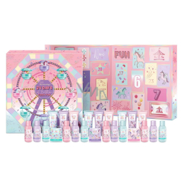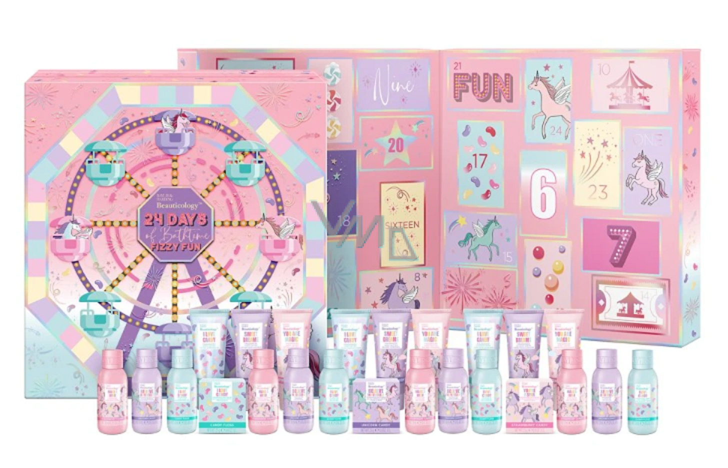 Skróć oczekiwanie na Boże Narodzenie i delektuj się 24 luksusowymi pielęgnacyjnymi mini produktami kosmetycznymi w kilku wariantach z kolekcji Beauticology. Wciągną Ciebie, dzieci i młode dziewczyny do środka cukierni i zabawnego parku. Jednorożce, wróżki cukierków i uczucie szczęścia otuli skórę ciała i dodadzą to właściwe czarowanie podczas rutynowej pielęgnacji skóry.