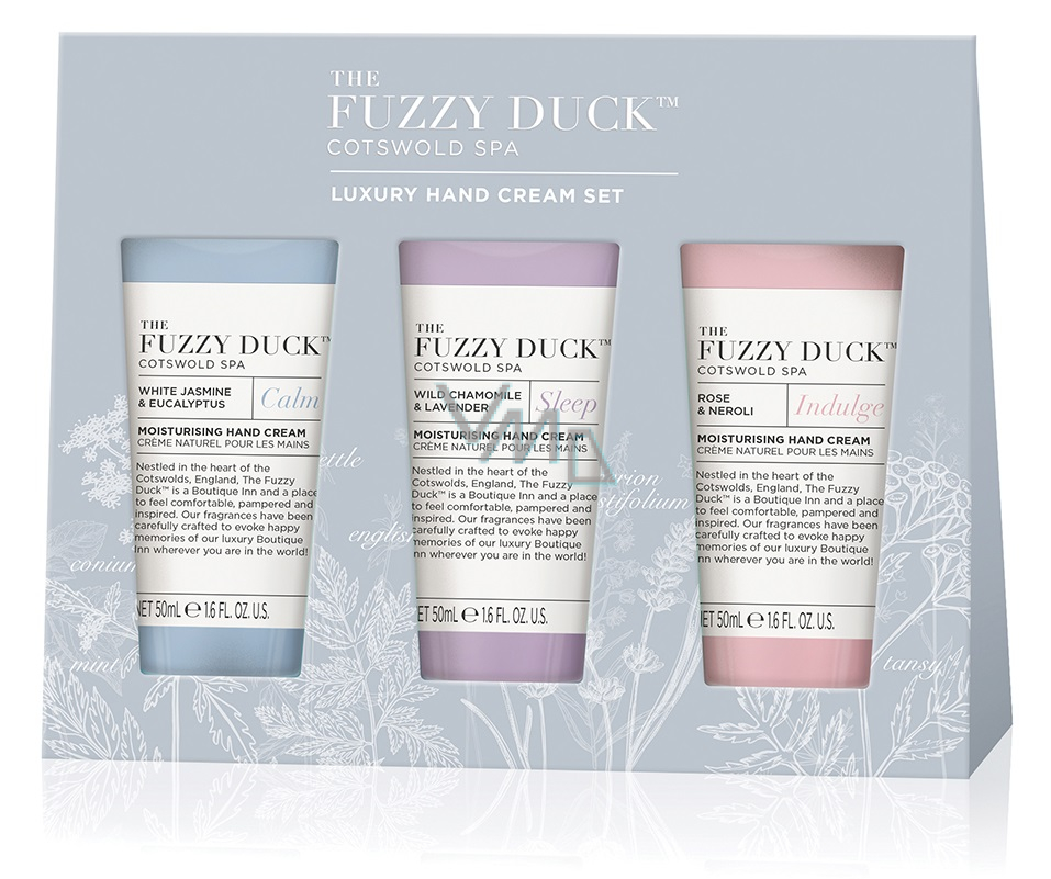 Najděte si čas pro sebe se sadou krémů na ruce. Každý krém má specifickou vůni jako je bílý jasmín a eukalyptus, heřmánek a levandule a růže a neroli. Tuto uklidňující kolekci luxusních přípravků pro péči o tělo zdobí trendy odstíny a minimalistické ilustrace inspirované přírodou. Klid, rozmazlování a relaxace jsou krásně podtrhnuté rafinovanými vůněmi, které byly vypilovány tak, aby potěšily mysl, tělo i duši. Obdarovaný člověk se pak bude doma cítit opečovávaný jako na wellness.