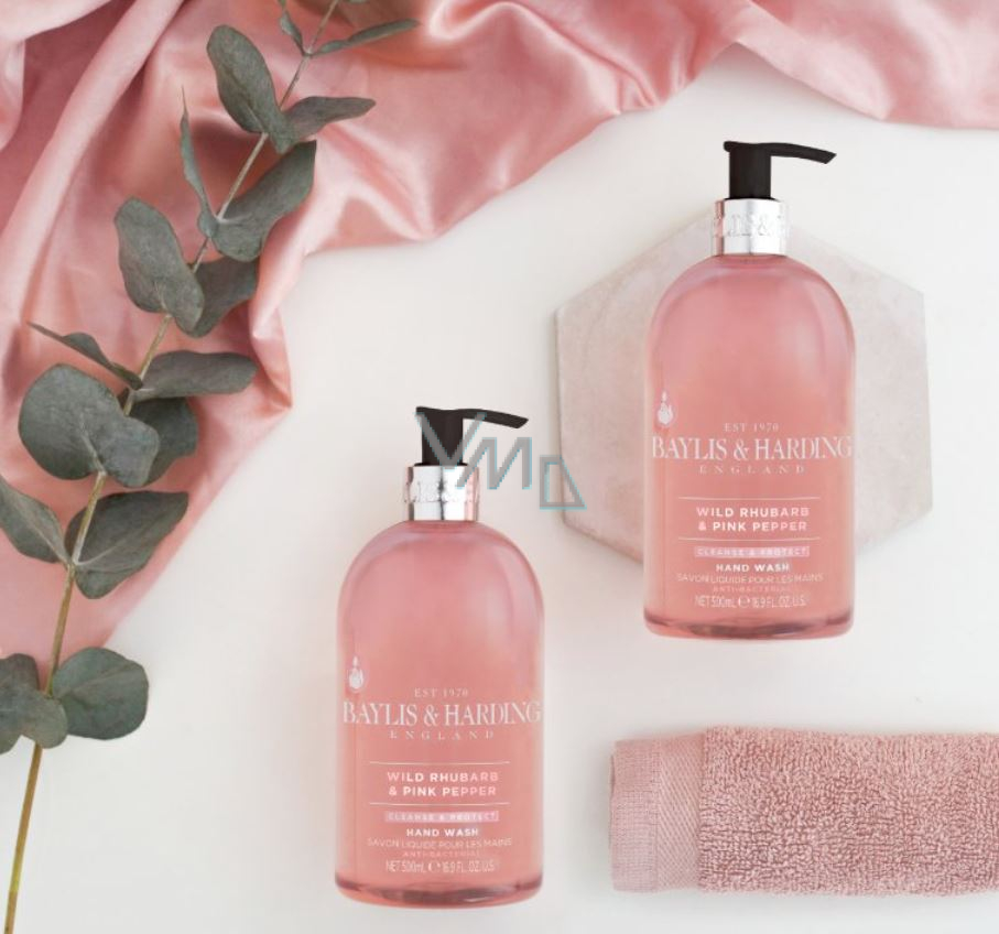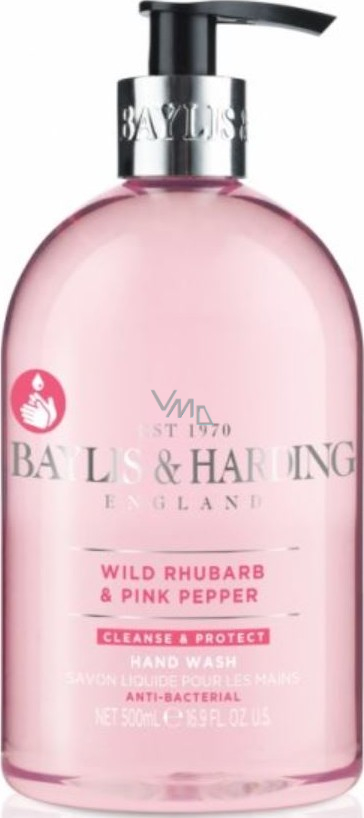Baylis & Harding Divoká rebarbora a růžový pepř antibakteriální tekuté mýdlo na ruce dávkovač 500 ml