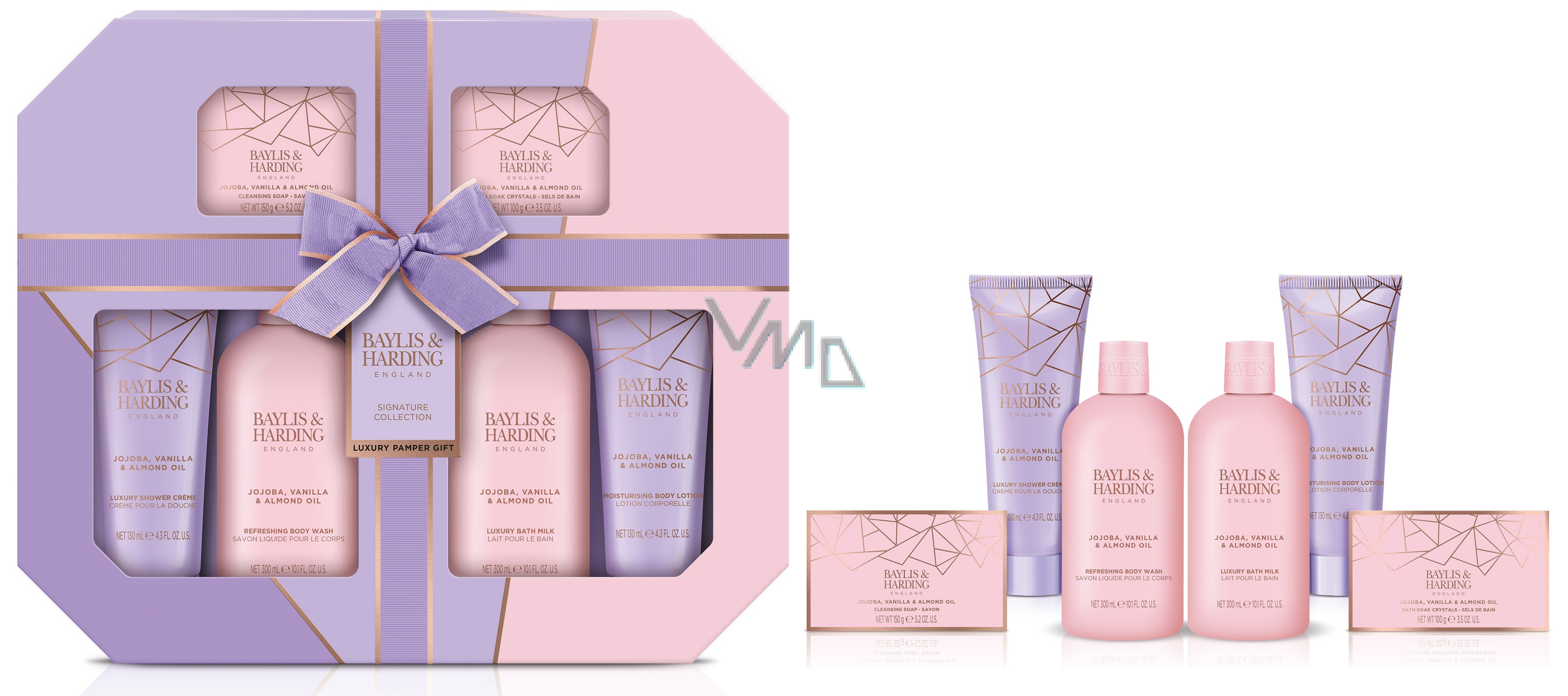 Baylis & Harding Jojoba a Vanilka sprchový gel 300 ml + koupelové mléko 300 ml + tuhé mýdlo 150 g + sprchový krém 130 ml + tělové mléko 130 ml + krystalky do koupele 100 g, kosmetická sada pro ženy