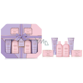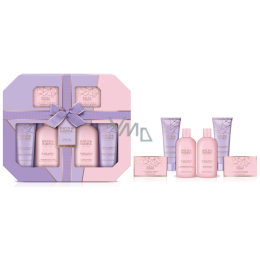 Nádherná dárková sada se bude vyjímat v každé koupelně. Rozmazlujte svou pokožku luxusními produkty. Sprchový gel šetrně čistí pokožku, vytváří bohatou pěnu a zanechává pokožku hebkou na dotek. Navíc uvolňuje dlouhotrvající vůni. Nádherně hladký a bohatý sprchový krém je šetrný k pokožce, účinně čistí a vytváří intenzivní pěnu. Navíc zanechá pokožku hydratovanou a jemně provoněnou. Výživné mléko dodá pokožce potřebnou hydrataci a úlevu od pocitu suchosti. Zanechává ji hebkou, vláčnou a příjemně provoněnou. Voňavé krystalky dodají koupeli nový rozměr, nádherně provoní celou lázeň a zanechají pokožku hebkou a hladkou. Tuhé mýdlo šetrně čistí pokožku bez nepříjemného vysušování, vytváří bohatou pěnu a zanechává dlouhotrvající vůni. Krémové mléko do koupele zanechává pokožku hebkou, vláčnou a příjemně provoněnou.