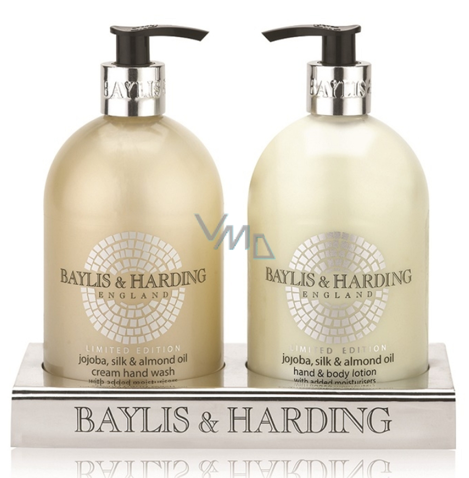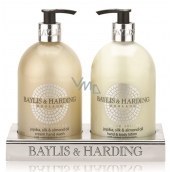 Baylis & Harding Jojoba, Hedvábí a Mandlový olej tekuté mýdlo dávkovač 500 ml + mléko na ruce dávkovač 500 ml, kosmetická sada