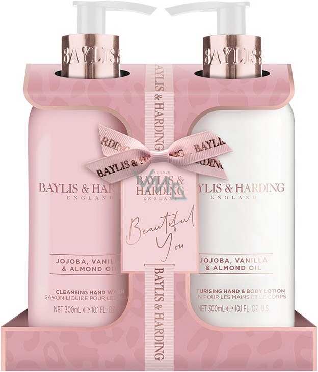 Baylis & Harding Jojoba, Vanilka a Mandlový olej tekuté mýdlo na ruce 300 ml + mléko na ruce a tělo 300 ml, kosmetická sada