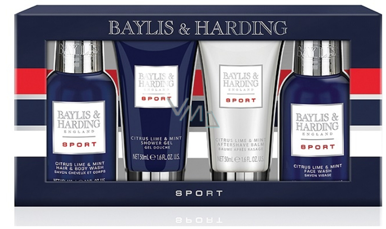 Baylis & Harding Men Limetka a Máta tekuté mýdlo na tělo i vlasy 100 ml + mycí gel na obličej 100 ml + balzám po holení 50 ml + sprchový gel 50 ml kosmetická dárková sada pro muže