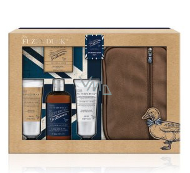 Baylis & Harding The Fuzzy Duck Zázvor a Limetka 2v1 šampon a sprchový gel 300 ml + toaletní mýdlo 150 g + balzám po holení 130 ml + sprchový gel 130 ml + toaletní taška, kosmetická sada pro muže