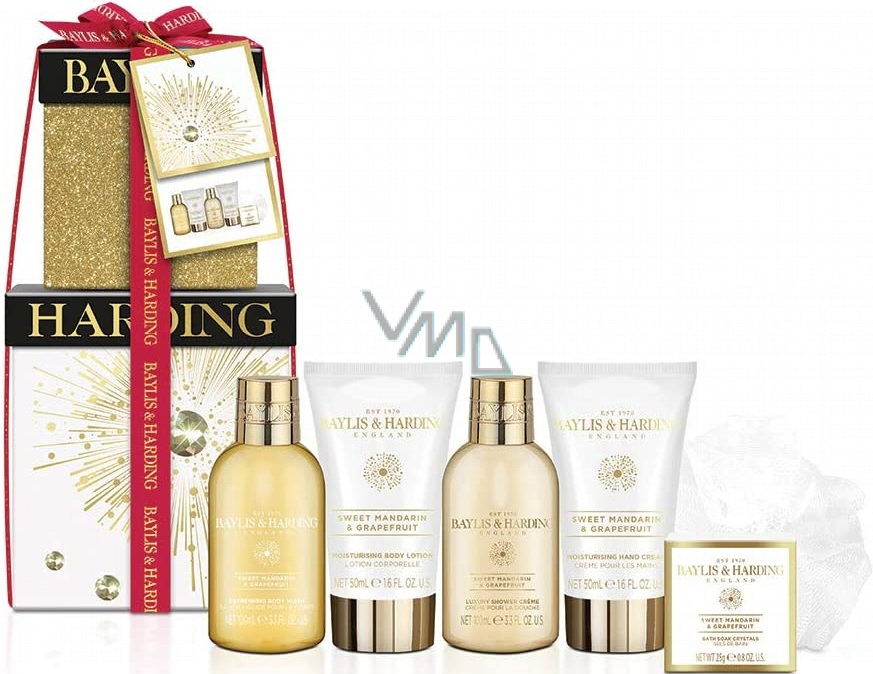 Dárkový set, který obsahuje veškeré produkty, které potřebujete k dokonalému rituálu péče o tělo. Mycí gel, sprchový krém, tělové mléko, krém na ruce, koupelová sůl a mycí žínka. Rozmazlete sebe a své nejbližší pečujícími složkami a neodolatelnou vůní sladké mandarinky, grepu a jasmínu.