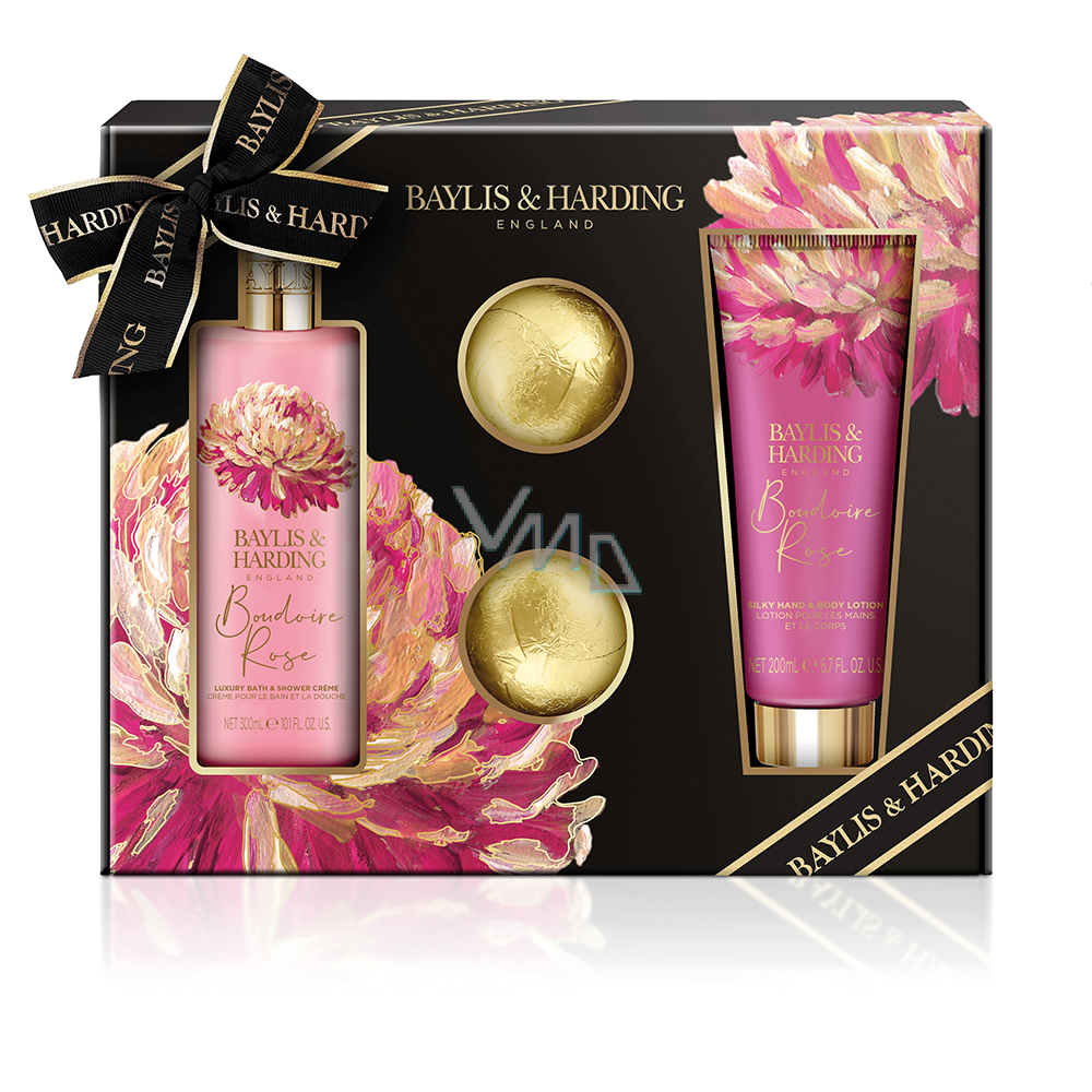 Baylis & Harding Tajemniczy różowy krem do kąpieli i pod prysznic 300 ml + mleczko do rąk i ciała 200 ml + kula do kąpieli 2 x 75 g, zestaw kosmetyczny dla kobiet