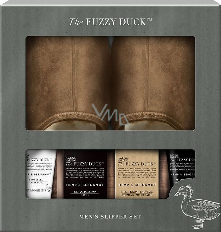 Baylis & Harding Men Konopí a Bergamot mýdlo 100 g + krystalky do koupele 100 g + sprchový gel 50 ml + balzám po holení 50 ml + pantofle, kosmetická sada pro muže