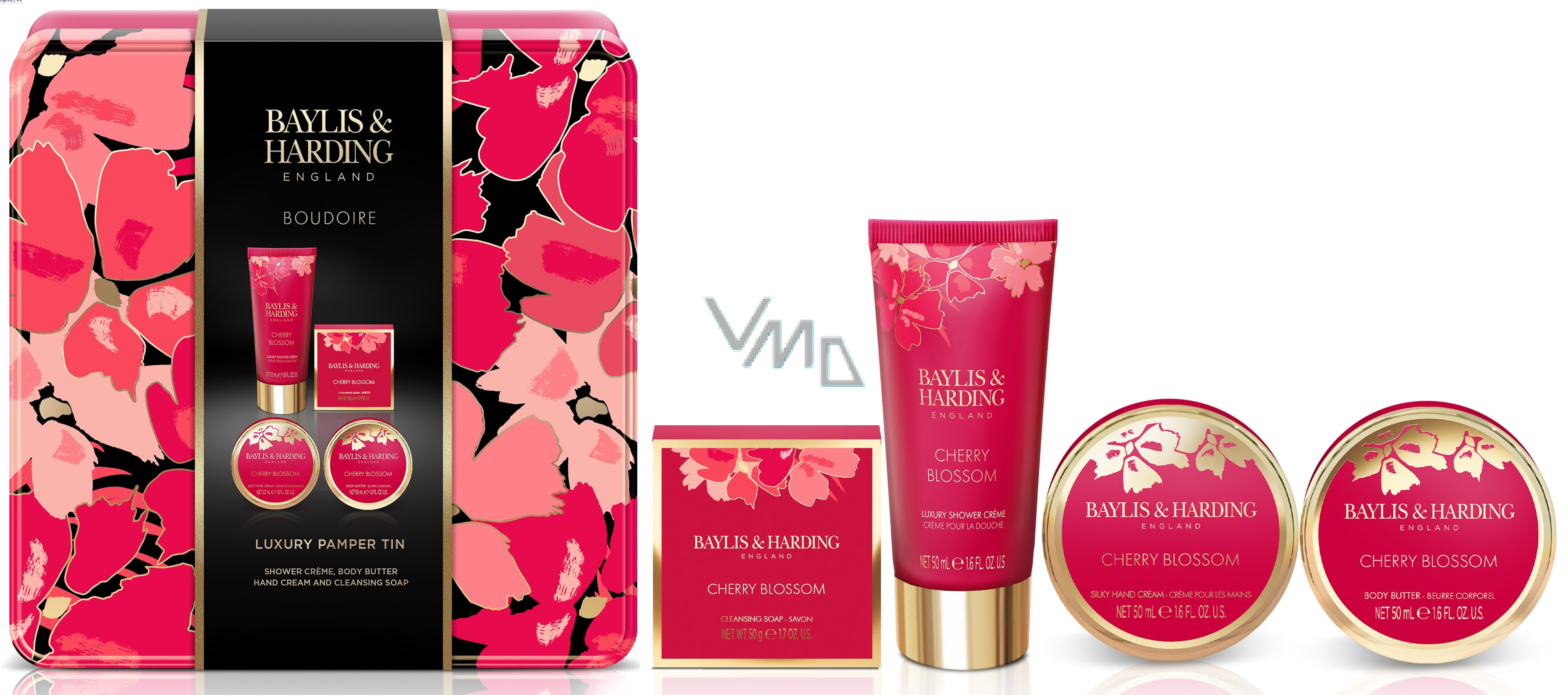 Baylis & Harding Třešňový květ sprchový krém 50 ml + krém na ruce 50 ml + tuhé mýdlo 50 g + tělové máslo 50 ml + kosmetická taška, kosmetická sada pro ženy
