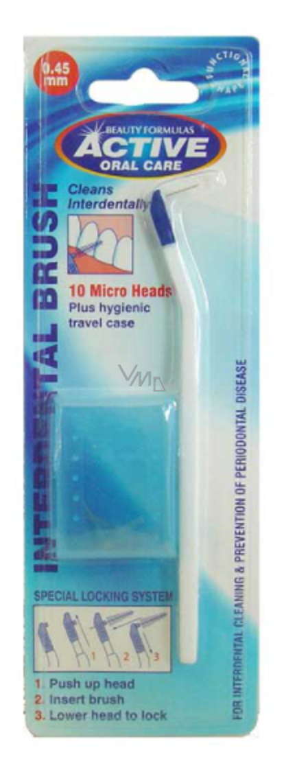 Tento mezizubní kartáček obsahuje speciální uzamykací systém, jen zatlačte hlavu nahoru, vložte kartáč a sklopte hlavu, aby se zajistila.
