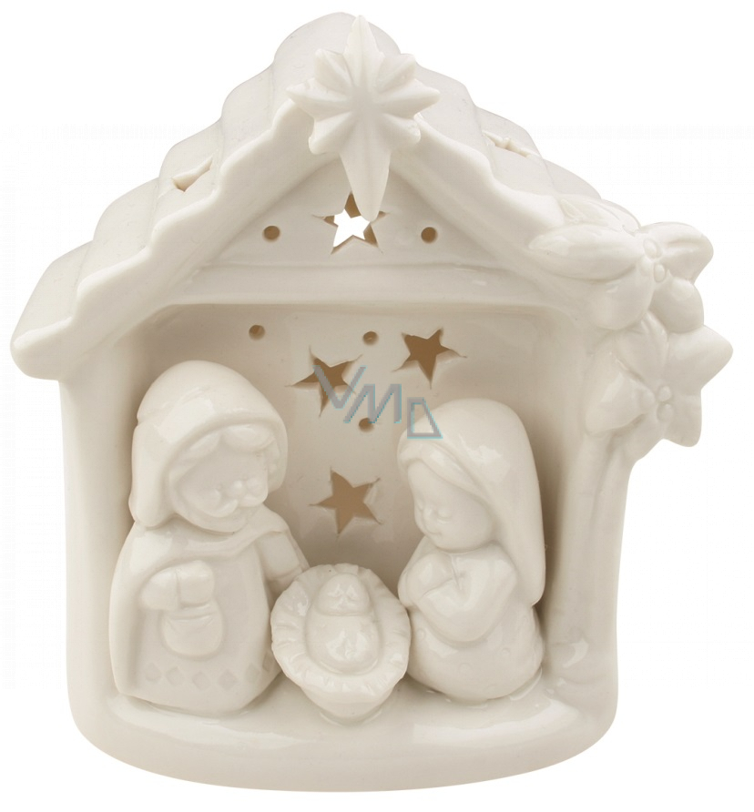 Betlém porcelánový s LED osvětlením bílý 12 cm