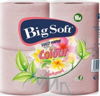 Toaletní papír Big Soft Color růžový. Velmi jemný toaletní papír 2vrstvý. Vyrobeno ze 100% celulozy.
