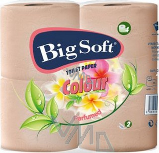 Toaletní papír Big Soft Colour parfémovaný světle oranžový. Velmi jemný toaletní papír 2vrstvý. Vyrobeno ze 100% celulozy.