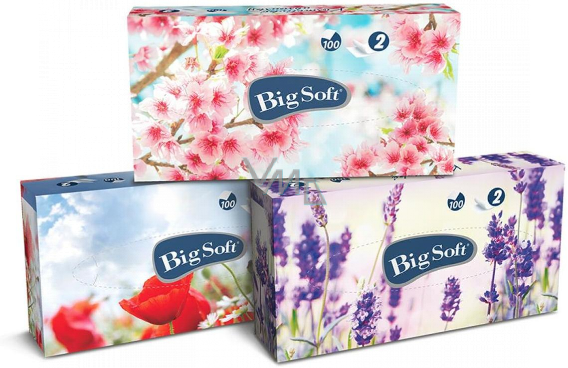 Big Soft Deluxe kosmetické papírové ubrousky 2 vrstvé v krabičce 100 kusů