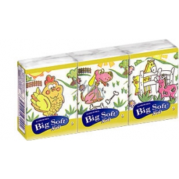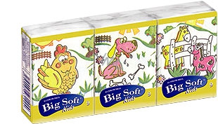 Nejluxusnější kapesníčky Big Soft Kids s esencí z oleje. 4 vrstvy pro vaše nejmenší, nabízí nejjemnější péči. Kapesníčky mají dětský potisk