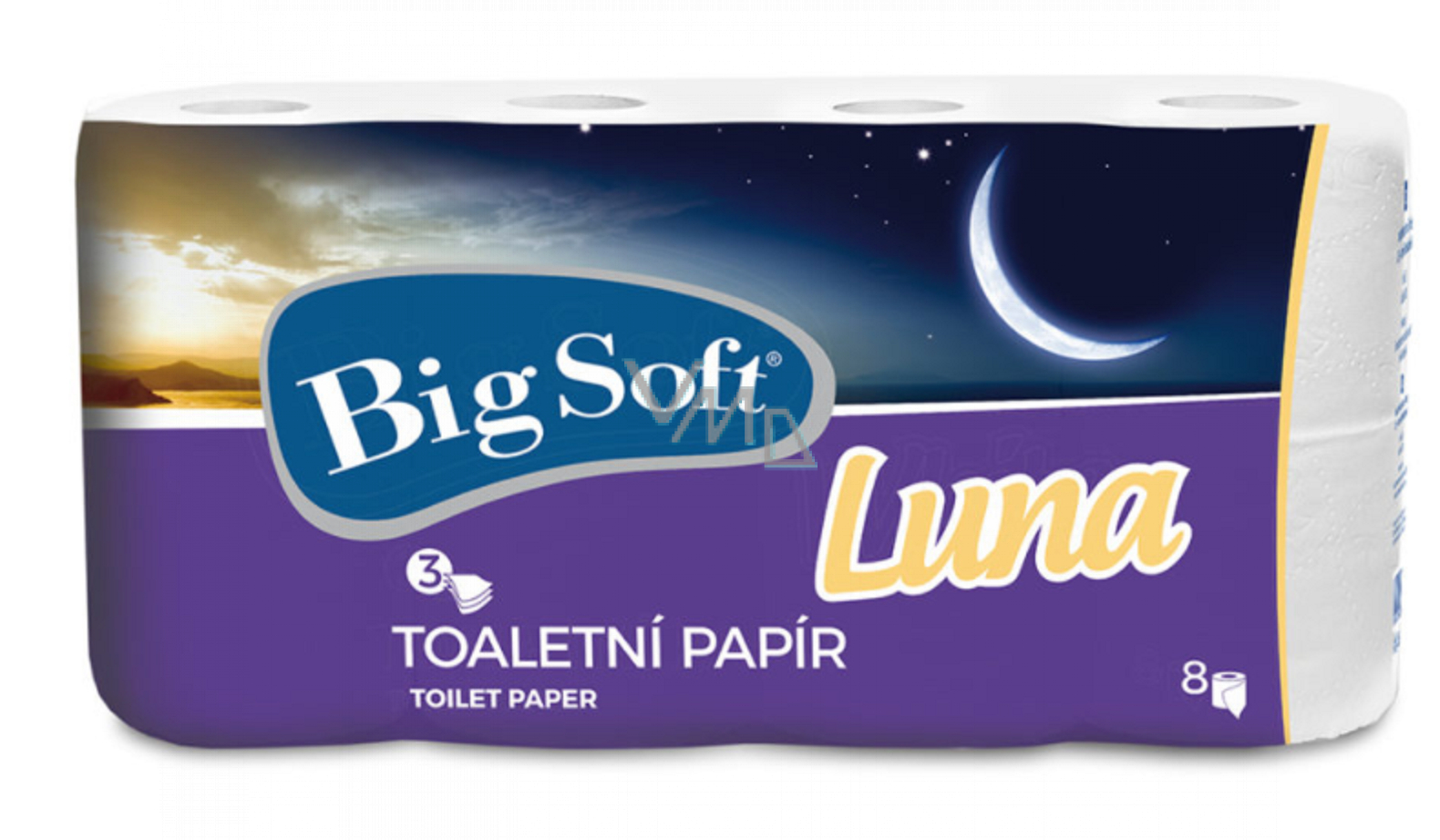 Toaletní papír v super kvalitě. Big Soft Luna, vám nabízí svůj nejlepší toaletní papír, velmi jemný toaletní papír 3vrstvý. Vyrobeno ze 100% celulozy.