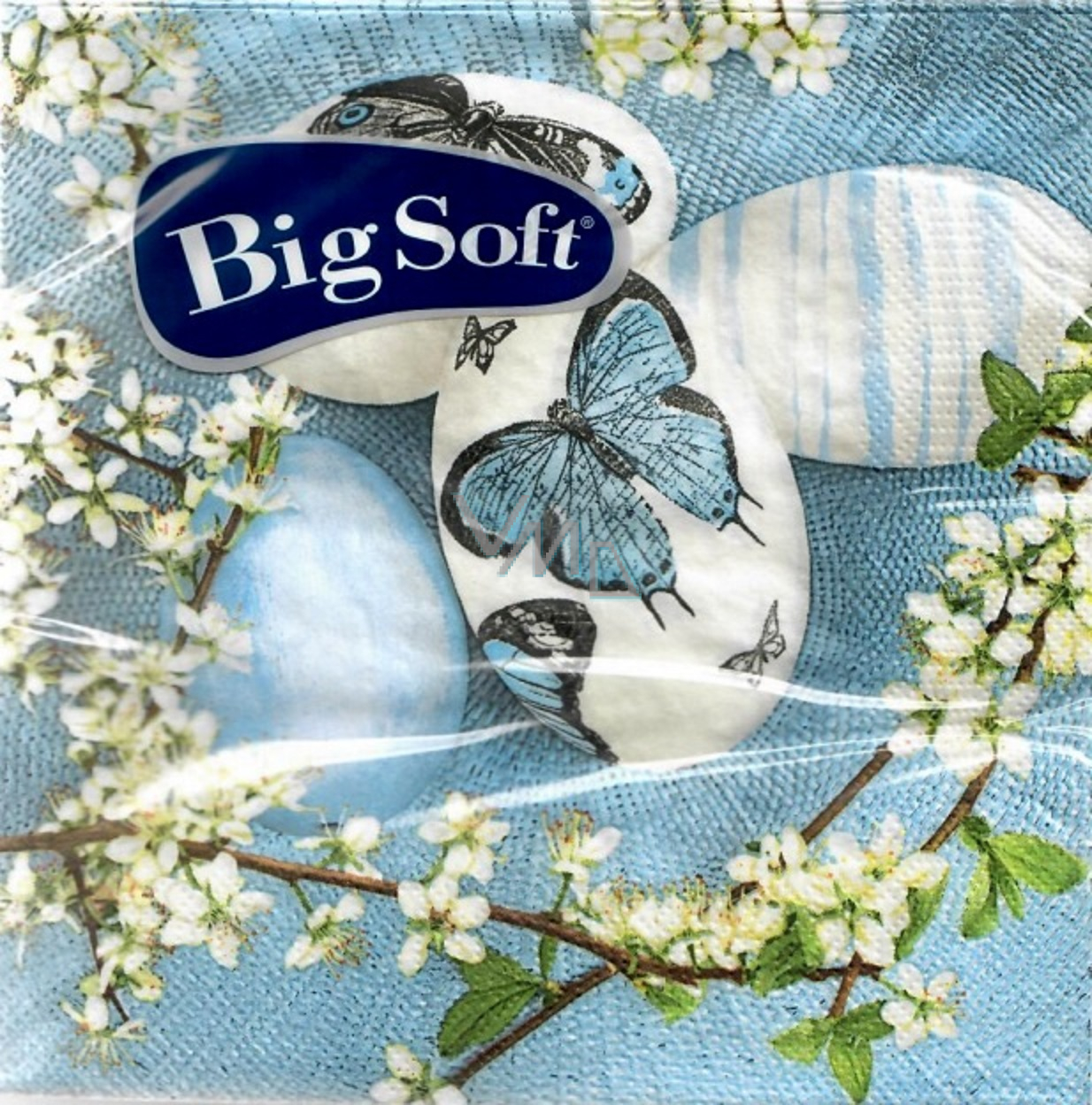 Big Soft Papírové ubrousky 2 vrstvé 33 x 33 cm 20 kusů Velikonoční modré s vajíčky s motýlky