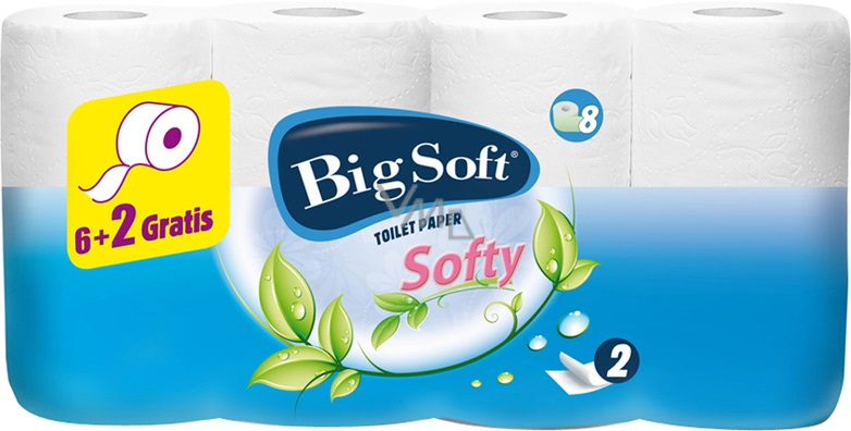 Toaletní papír Big Soft Softy. Velmi jemný toaletní papír 2vrstvý. Vyrobeno ze 100% celulozy.