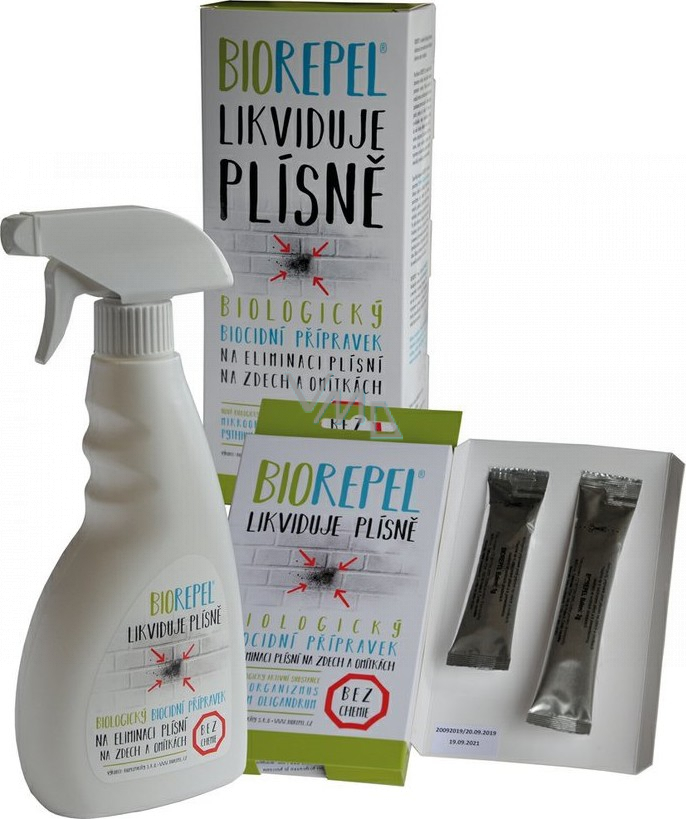 - Bio Repel je ojedinělý netoxický ekologicky čistý přípravek, představující nové možnosti ošetřování zdí v objektech proti nežádoucím vlivům plísní. Jeho specifická kompozice mikroorganismů izolovaných z přírodních substrátů potlačuje nežádoucí plísně na základě mezidruhového parazitizmu a je schopna svou aktivitou vymýtit i „podhoubí" plísní rostoucích nejen na omítkách, v omítkách i pod nimi ve zdivu. Po jejich eliminaci biologický proces ustane. K aktivaci přípravku je potřeba čistá voda a nanesení připraveného roztoku po pěti minutách na zasažené zdivo. Doba od aktivace po nanesení by neměla přesáhnout dobu dvou hodin.