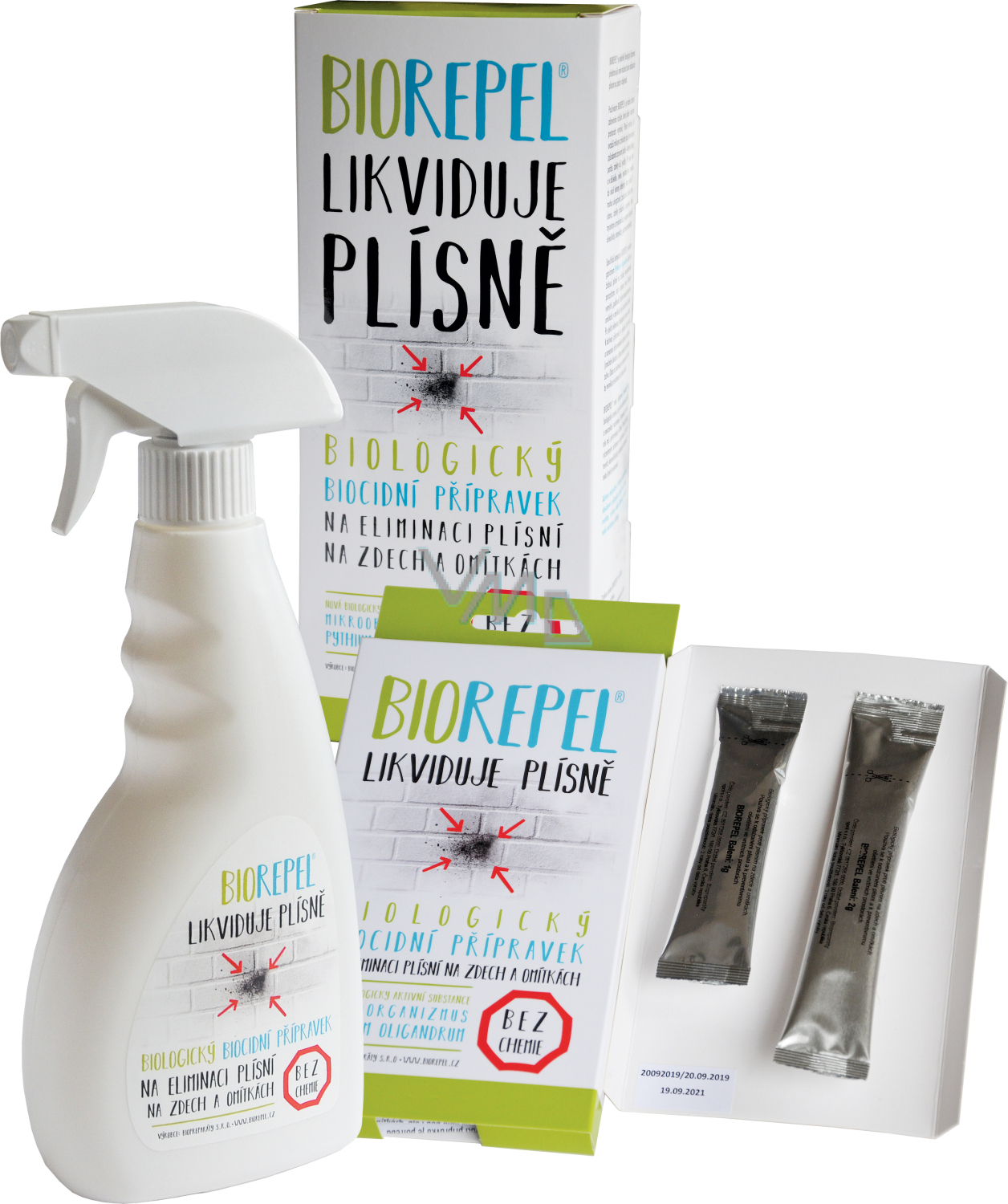 BIOREPEL® není přípravek chemický, ale biologický a nejen, že plísně odstraňuje ze zdí a nevznikají rezistence, či genetické mutace, ale má i přetrvávající účinek. Právě proto je významným přínosem v ošetřování zdí v bytových, kancelářských, výrobních, skladovacích nebo jiných prostorách. Vhodný i pro přidání do malířských nátěrů.
