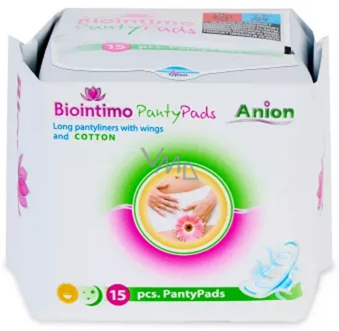 Damskie wkładki higieniczne - intimki Biointimo Panty Pads Anion są wydłużonymi, cienkimi wkładkami z skrzydełkami dla łatwego przepływu i do codziennej ochrony majtek. Wbudowana anionowa warstwa pomaga zmniejszać rozwój bakterii i zapobiega powstawaniu podrażnień. Bez dodatku perfumów. Specjalnie ustrukturyzowane, oddychające warstwy zapewniają przepływ powietrza i uczucie suchości na wrażliwych obszarach ciała.