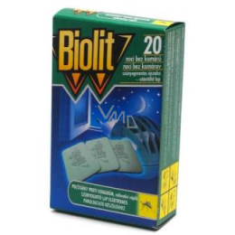 Biolit elektrický odpařovač se suchou náplní hubí komáry, pakomáry, pakomárce a jiný malý hmyz. Ochrání Vás před nepříjemným hmyzem nejméně po dobu 10 nocí ( 1 polštářek na 1 noc = 8 až 10 hod.). Elektrický odpařovač Biolit se používá především v ložnicích, v dětských pokojích a jiných obytných místnostech Biolit® náhradní polštářky a el. odpařovač, insekticid proti komárům. Přípravek poskytuje ochranu proti komárům až 8 hodin. Přípravek začne působit během 10 minut.