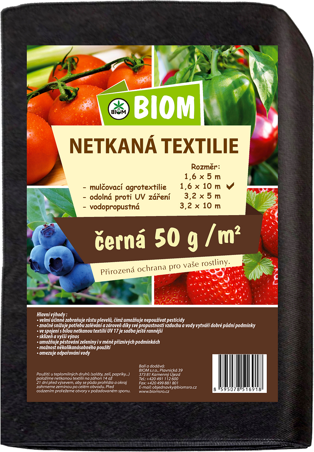 Biom non-woven fabric czarny 17 g/m² rozmiar 1,6 x 10 m