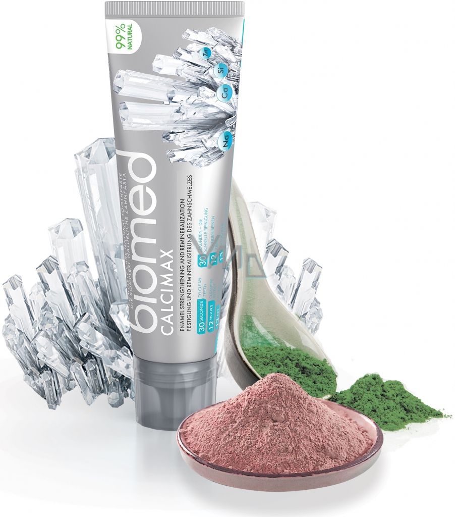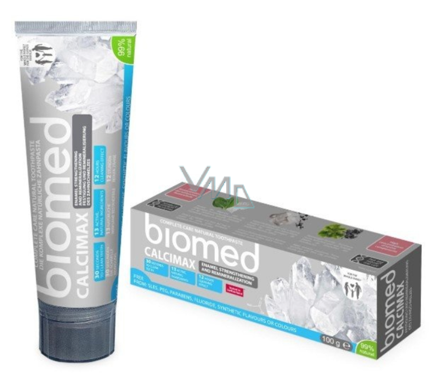Zubní pasta BIOMED Calcimax SPLAT je z 99 % z přírodních ingrediencí a napomáhá posilovat a remineralizovat zubní sklovinu. Neobsahuje SLS, fluorid, chlorhexidin, parabeny ani žádné agresivní bělicí složky.